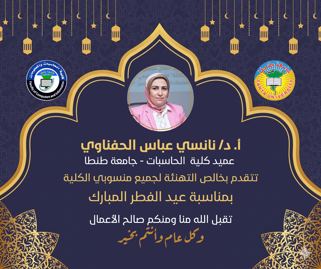 أبنائي وبناتي طلبة كلية الحاسبات والمعلومات يسعدني أن أنتهز هذه الفرصة لأهنئ الطلاب القدامى بالعام الدراسي، كما يسعدني أن أهنئ بصفة خاصة الطلاب الجدد ببداية عام جامعي الأول في حياتكم ، كما أثني اختياركم لكلية الحاسبات والمعلومات. إن مجال الحاسبات والمعلومات بات من أهم المجالات الأساسية والمشتركة في كافة الأنشطة، سواء كانت اقتصادية أو خدمية؛ لذا فأنتم المستقبل الذي يحمل معه الخبرات والمهارات التي سوف تساهم بعلمها وخبراتها وأفكارها في تطوير المجتمع ورفعة شأنه. ومن أهم الرؤى التي تتبناها كلية الحاسبات والمعلومات البحث، وتنمية المعارف، ومواكبة الأحداث في كافة المجالات المتعلقة بتداول البيانات والمعلومات، هذا المجال الذي أصبح متطورا بشكل متسارع ممثلا ركيزة أساسية لبناء المجتمعات الجديدة والذكية. أبنائي وبناتي طلبة كلية الحاسبات والمعلومات أحثكم على تنمية عقولكم على الإبداع والإبتكار وتطوير معارفكم وخبراتكم على الدوام، وكلي أمل أن يخرج منكم علماء مصر القادمين؛ ليساهموا في ازدهار مجال دراستكم في الحاسبات والمعلومات، لخدمة مصرنا الغالية والارتقاء بالعلم ومواكبة كل ما هو حديث. .